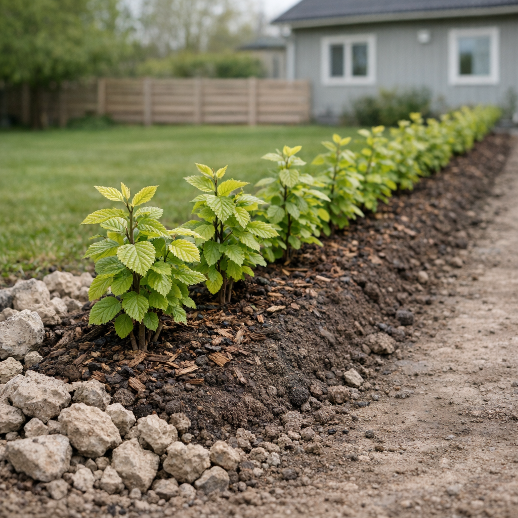 31 januar 2024 3 min 3556 Sist oppdatert 12 februar 2026 av Therese Hermansson Indholdsfortegnelse Sådan får du succes i lerjordHækplanter der trives i lerjordFAQKan man plante i lerjord?Hvilken jord skal man plante hæk i?Er der næring i lerjord?Kan man plante hæk i februar? Sådan får du succes i lerjord Ler binder vand og komprimeres let. Du skaber de bedste vilkår ved at åbne jorden i dybden og tilføre groft, organisk materiale, som holder porerne åbne og leder overskydende vand væk. Dyk evt. ned i, hvordan du kan forbedre lerjord med humus for flere praktiske trin og tips til udfordrende jordtyper. Test dræn: Grav et hul på ca. 30 cm, fyld med vand og tjek at det siver bort inden for 1-2 timer. Løsn jorden 40-50 cm i dybden i hele hækskiftet. Arbejd i let fugtig, ikke våd jord for at undgå klumper. Tilfør 5-10 cm velomsat kompost og eventuelt groft sand eller grus i hele plantebæltet, ikke kun i huller. Plant i korrekt dybde: Toppen af rodklumpen skal flugte med jordoverfladen, og rødder må ikke stå i en “skål”. Form en svag forhøjning eller en lav vold, så overfladevand kan ledes væk fra stammerne. Læg 5-7 cm organisk mulch efter plantning, men hold 5 cm fri omkring stammer. Vand sjældent, men grundigt. Tidspunktet for plantning betyder også meget i lerjord — læs om bedste plantetid for hæk for at minimere vandmætning og kompaktering. Gød moderat i foråret for at understøtte roddannelse. Lerjord er ofte neutral til let basisk, så vælg arter der trives ved pH omkring 6,5-7,5. Vælg desuden plantetype med omtanke — barrod vs. klump vs. potte — så rødderne etablerer sig optimalt i tung jord. Hækplanter der trives i lerjord Avnbøg (Carpinus betulus) Tåler tung jord, vind og klipning. Sætter tætte rødder og giver en klassisk, tæt hæk. Læs mere om avnbøg til tung jord. Liguster (Ligustrum, også stedsegrøn) Meget robust, tåler ler og bynære forhold. Hurtig til at lukke og let at forme. Læs mere om liguster til lerjord. Kornel (Cornus alba/sanguinea) Trives i tung, fugtig jord. Smukke vintergrene og solid struktur. Kvalkved (Viburnum opulus) Klarer fugtig lerjord, blomstrer rigt og giver bær til fuglene. Laurbærkirsebær ‘Elly’ (Prunus laurocerasus) Kan stå i ler, hvis drænet er i orden. Tæt, stedsegrøn skærm. Hos Plantinavia finder du et bredt udvalg af hækplanter og 100% vækstgaranti med hurtig levering. Er du i tvivl om valg, så brug vores hæk-guide til at matche hæk og jordtype. Vil du undgå typiske faldgruber? Læs om almindelige fejl ved plantning, så du undgår vandlidning, for dyb plantning og dårlig dræning. FAQ Kan man plante i lerjord? Ja. Forbedr først drænet og strukturen, vælg arter der tåler tung eller fugtig jord, og plant i niveau med overfladen. Læg mulch og vand grundigt, men undgå konstant vandmætning. Hvilken jord skal man plante hæk i? Ideelt en veldrænet, humusrig jord, der holder på fugt uden at stå vandmættet. Lerjord kan fungere glimrende, hvis du løsner dybt, tilfører kompost og sikrer effektiv afvanding. Er der næring i lerjord? Ja. Lerjord er typisk rig på næringsstoffer og mineraler. Udfordringen er struktur og ilt til rødderne, så fokus bør være på dræn, porøsitet og organisk materiale. Kan man plante hæk i februar? Ofte ja, især barrodede planter i hvileperioden, hvis jorden er frostfri og ikke vandmættet. Plant i korrekt dybde, vand til, og dæk med mulch for at beskytte rødderne.