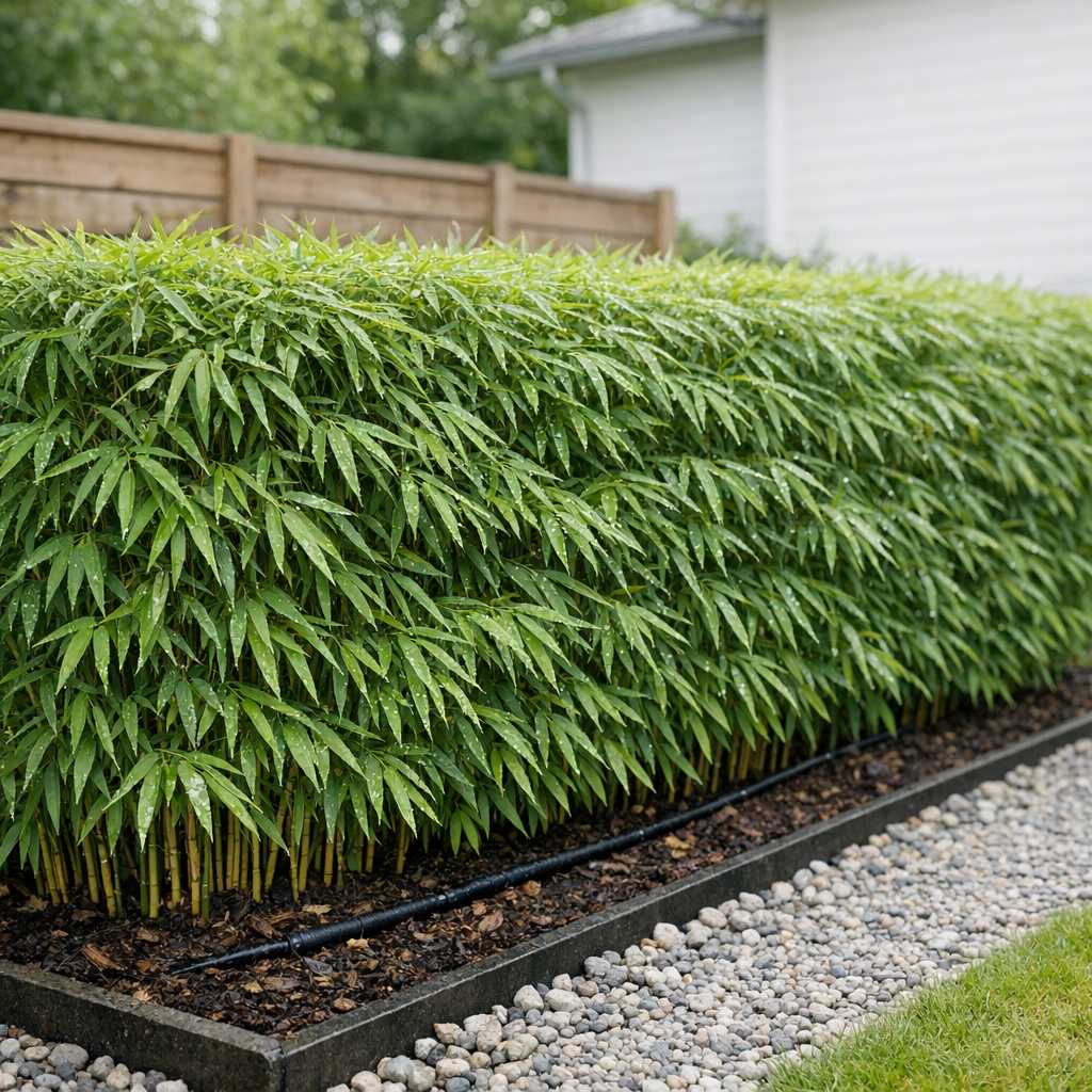 15 december 2024 4 min 2628 Sist oppdatert 5 februar 2026 av Therese Hermansson Indholdsfortegnelse Lys, jord og vindforhold for bambushækPlantning af bambushæk trin for trinLøbende plejeVandingGødningBeskæringVinterplejeOfte stillede spørgsmål om pleje af bambushækHvornår skal bambus klippes ned?Hvorfor bliver bambus gul?Hvordan plejer man bambus?Hvilken olie skal man bruge til bambus? Lys, jord og vindforhold for bambushæk Bambus trives bedst i sol til halvskygge. Vælg en placering med læ, så bladene ikke tørrer ud i hård vind, især om vinteren. I meget udsatte haver kan du med fordel plante hækken et skridt ind fra skel og lade andre planter eller hegn give læ, så bambussen får ro til at etablere sig. Jorden skal være porøs, næringsrig og veldrænet. Tunge lerjorde forbedres med kompost og groft sand eller grus, mens meget sandet jord får gavn af masser af kompost, der holder på fugt. Undgå stående vand omkring rødderne, men hold jorden jævnt fugtig. Et lag organisk jorddække hjælper med at holde på fugten og forbedrer jordstrukturen over tid. Fargesia er ikke løbende, så rodspærre er normalt ikke nødvendig. Plantning af bambushæk trin for trin Plant helst i forår eller efterår, hvor jorden er lun og fugtig. Løsn jorden i en bred plantegrøft og bland den op med kompost. Grav så dybt, at potteklumpens top flugter jordoverfladen efter vanding. Sæt to planter pr. meter for en hurtigt tæt hæk; ønsker du ekstra tæthed, kan du gå op til tre pr. meter. Vand grundigt ved plantning, så jorden sætter sig omkring rødderne, og læg et lag jorddække omkring planterne. Hold den første sæson helt fri for ukrudt omkring rødderne. Plantinavia tilbyder robuste Fargesia-arter, der egner sig til hæk og giver en tæt væg med minimal vedligeholdelse, fx gul bambus ‘rufa’, bambus ‘robusta’ til hæk og sort bambus ‘black pearl’. Løbende pleje Vanding Hold jorden jævnt fugtig i de første to vækstsæsoner. Tjek fugten jævnligt i sommerperioder og vand, når de øverste 3-5 cm jord er tørre. Undgå vandmætning omkring rødderne. I efteråret reduceres vandingen, men vand ved længere tørke. Om vinteren kan du vande ved tøvejr efter længere perioder med tør frost og vind. Gødning Giv en organisk, langsomt frigivende gødning i foråret for at understøtte nyvækst. Kompost som topdressing gavner både næring og jordliv. Stop kvælstofrig gødning i sensommeren. I september kan du supplere med en kaliumrig efterårsgødning, der styrker skud og blade før vinteren. Har du brug for detaljer om dosering og timing, så læs vores hæk gødningsguide. Se også generelle plejeråd til hækplanter. Beskæring Beskær én gang årligt, typisk i maj eller juni. Klip let i toppen for at holde ønsket højde og stimulere tæthed, og fjern døde eller svage skud helt nede ved basis for at give lys til nye friske skud. Undgå hård beskæring sent på sæsonen. Vinterpleje Fargesia er vinterhårdfør, men kan få bladrulning eller let svidning i hård, udtørrende vind. Et lag jorddække beskytter rødderne, og vanding ved længere tid med tøvejr kan modvirke udtørring. Let bladgulning i slutningen af vinteren er normalt; nye skud frisker hækken op i foråret. Læs, hvordan du kan beskytte hæk om vinteren. Ofte stillede spørgsmål om pleje af bambushæk Hvornår skal bambus klippes ned? Klip i maj eller juni, når risikoen for hård frost er ovre. Form toppen let og fjern døde, svage eller krydsende skud ved basis. Undgå kraftig nedskæring sent på sommeren. Hvorfor bliver bambus gul? Gulning skyldes ofte tørke, stående vand eller vindtørring om vinteren. Tjek dræn og vandingsrutine, forbedr jord med kompost og giv læ. Let sæsongulning er normalt og forsvinder med forårsskud. Hvordan plejer man bambus? Sørg for læ, veldrænet og næringsrig jord, jævn fugt især i etablering, organisk gødning i foråret, let beskæring i forsommeren og et beskyttende jorddække. Vand ved tøvejr efter lang tør frost. Hvilken olie skal man bruge til bambus? Olie bruges til bambusmøbler og terrassebrædder, ikke til levende bambushække. Plej en hæk med vand, gødning og let beskæring. Undgå at påføre olie på blade eller stængler.